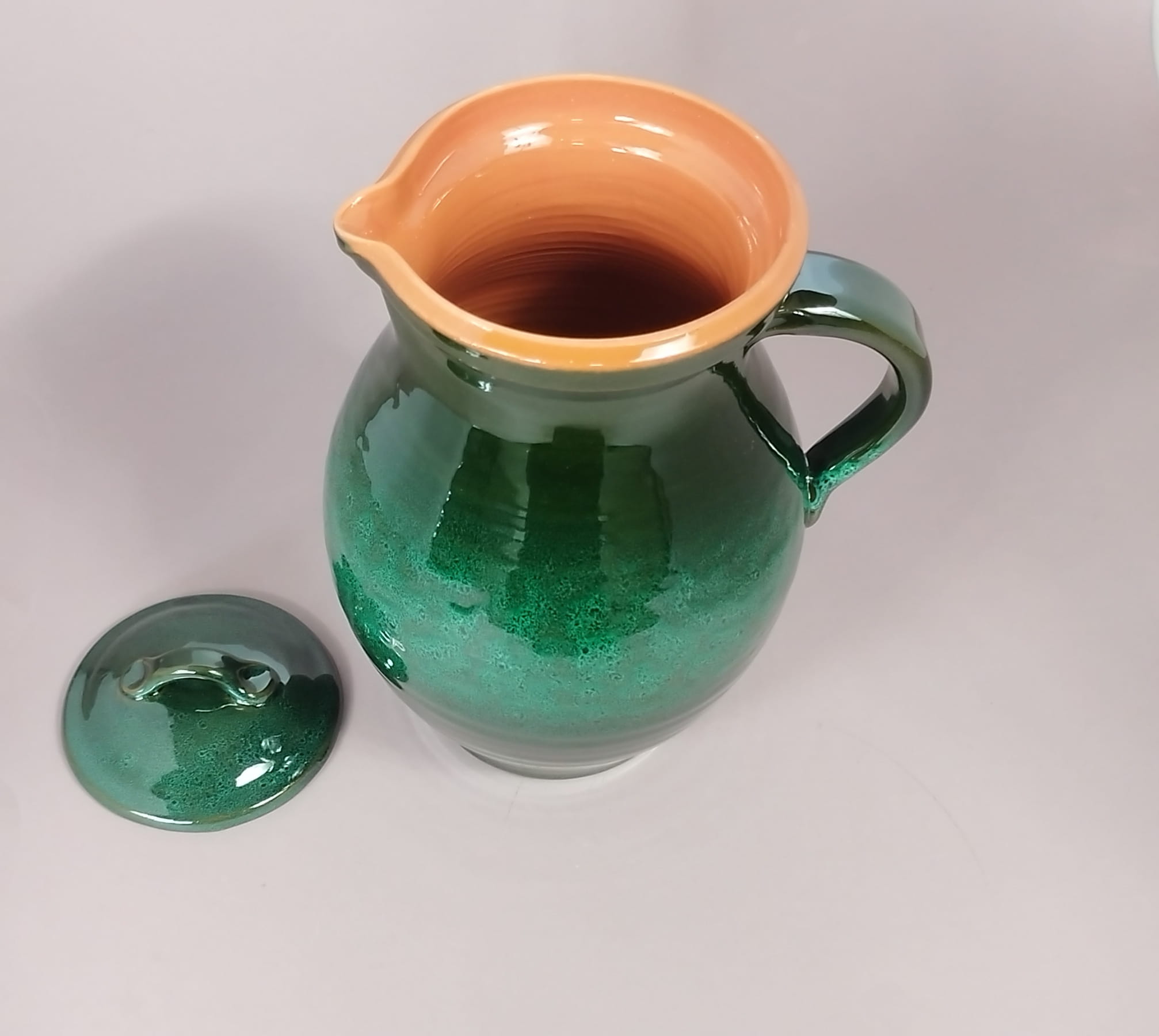Dzban z gliny, szkliwiony na zewnątrz, nie szkliwiony w środku, z uchem i pokrywką o poj.: 2 l