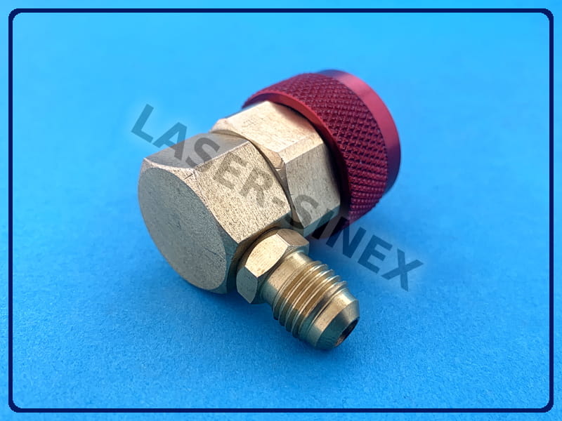 Prezentowane szybkozłącze klimatyzacji wysokiego ciśnienia wykonane jest z mosiądzu. Posiada funkcje autozapinania Gwarantują bezpieczne i pewne napełnienie. Powyższe adapter wykonany jest z trwalszego materiału, dzięki czemu jest bardziej odporny na uszkodzenia mechaniczne. Złącza przystosowane są do pracy na czynniku R134A. Idealna do trudno dostępnych miejsc, z pewnością przyda się w każdym warsztacie i stacji obsługi klimatyzacji samochodowej.