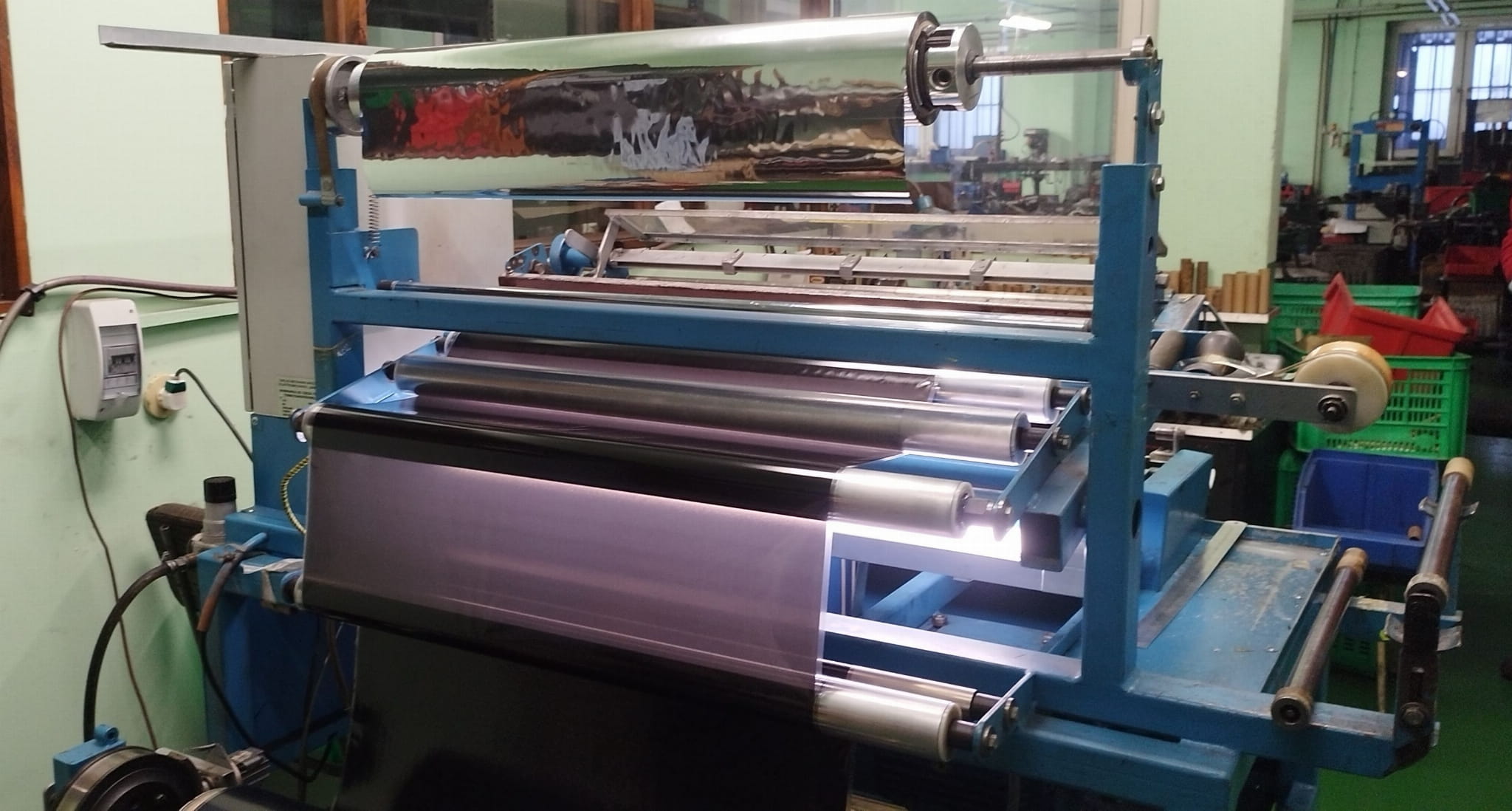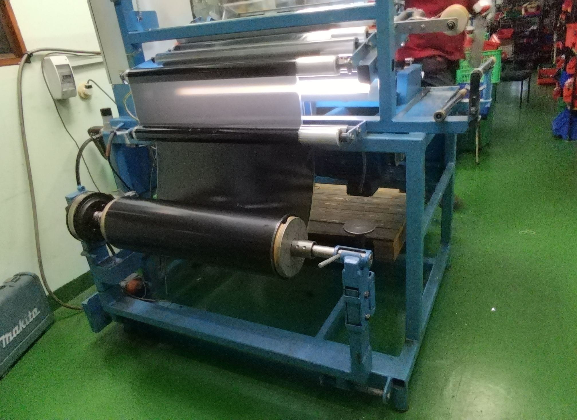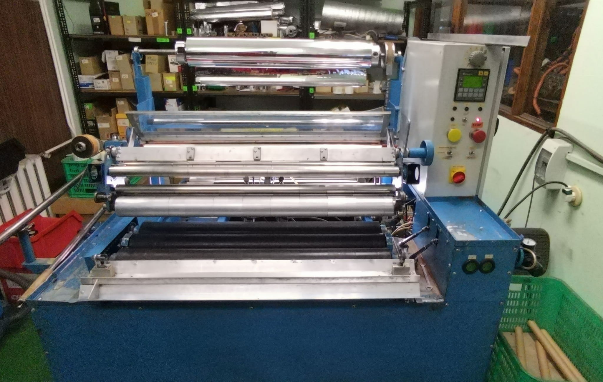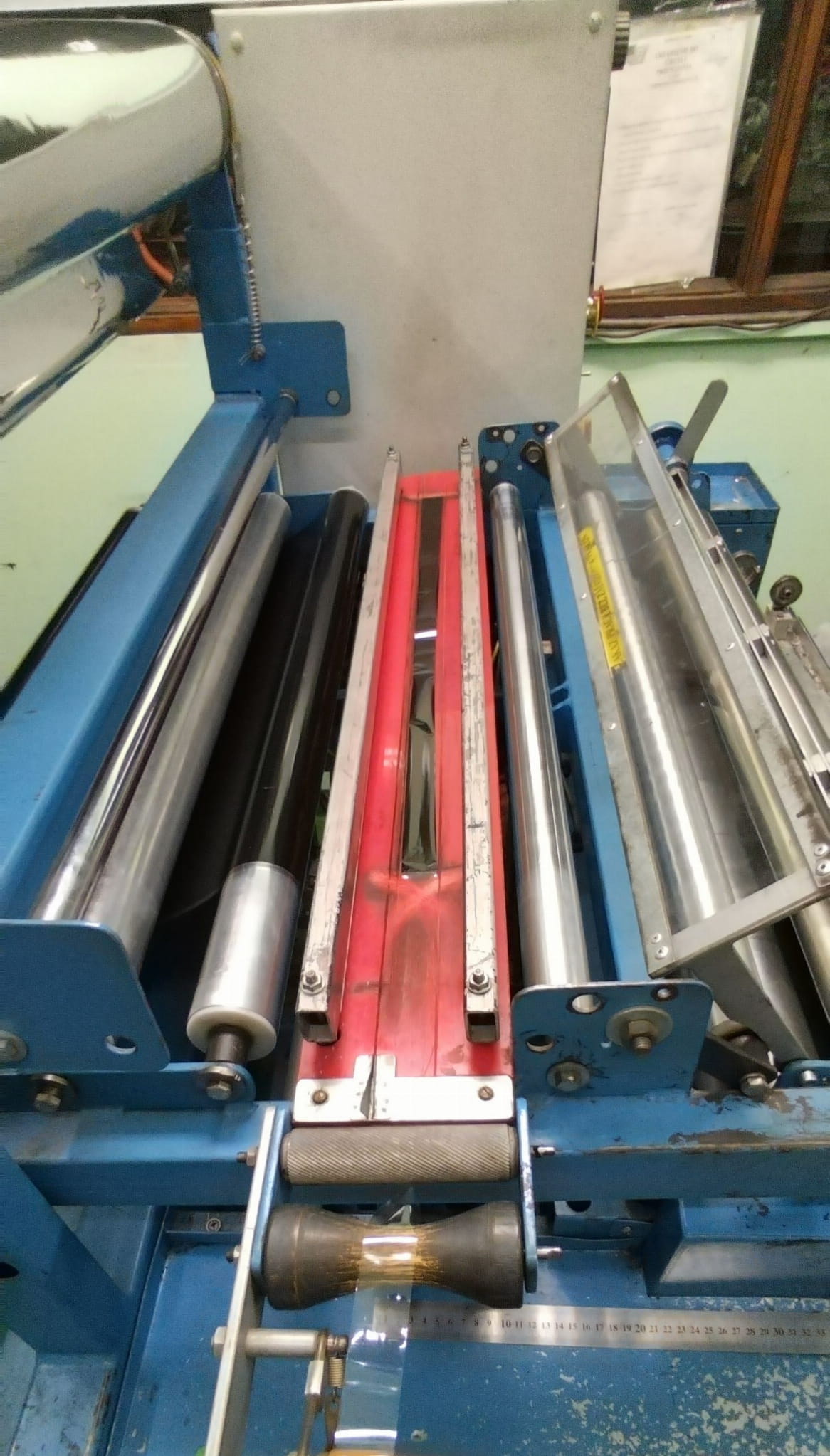 Maszyna służy do przewijania, cięcia wzdłużnego, odmierzania długości folii na rolkach małej średnicy, oraz przyklejania do jej końców odcinków folii metalizowanej. Automatyczny stop po nawinięciu zadanej długości rolki.
