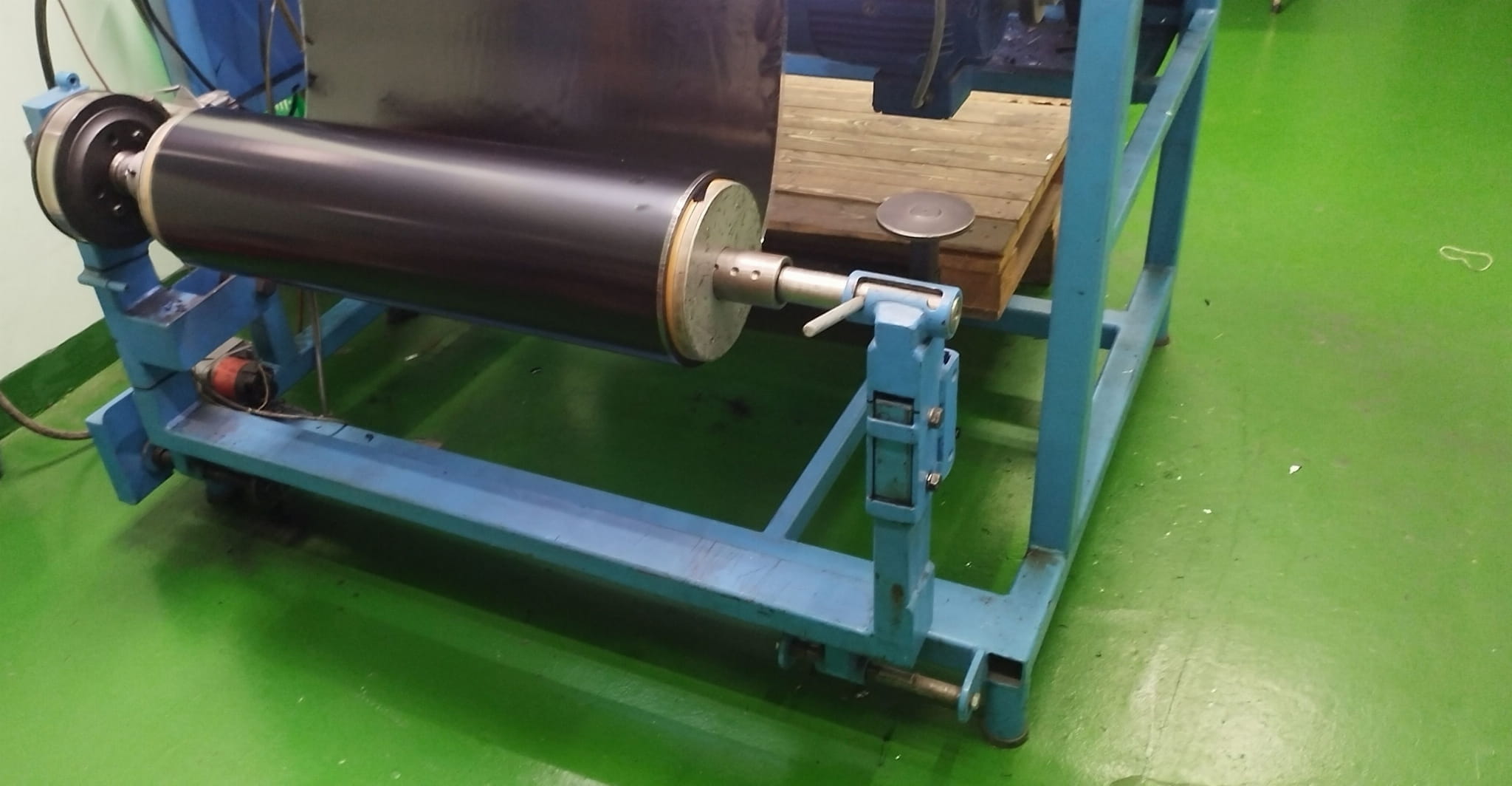 Bobiniarka do konfekcjonowania taśmy termotransferowej.