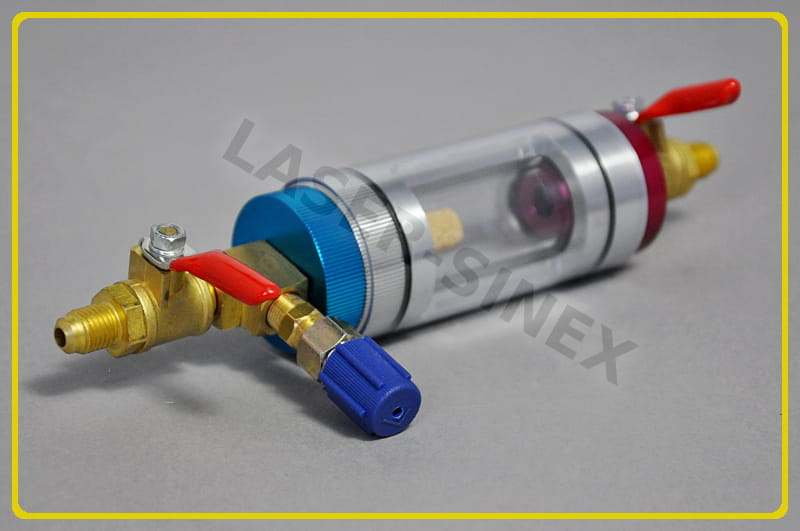 Rewizyjny tester, inspektor czynnika chłodniczego i oleju w układzie klimatyzacji. W formie małego szklanego zbiorniczka z zaworami odcinającymi przepływ po obu stronach testera. Posiada przyłącze niskiego ciśnienia do uzyskania próżni przed montażem i do odzysku czynnika z testera po wykonaniu badania układu. Szklana rewizja pozwala na wizualną ocenę jakości oleju i czynnika oraz obecność ewentualnych zanieczyszczeń znajdujących się w układzie.