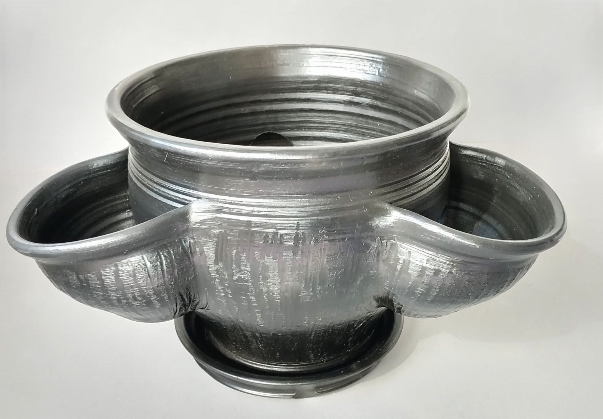 Donice gliniane z kolekcji "Klementyna" o przepięknym tradycyjnym kształcie, wykonane w całości ręcznie z wysokiej jakości gliny pochodzącej z Puszczy Knyszyńskiej, wypalane w tradycyjnym ceglanym piecu opalanym drewnem, w kolorze ciemny grafit, prawie czarny !