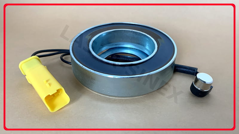 Elektromagnes jest elementem sprzęgła elektromagnetycznego. Cewka elektromagnetyczna jest zasilana napięciem od 12V. Sprzęgło elektromagnetyczne natomiast zbudowane jest z cewki elektromagnetycznej stałej, koła pasowego, zamontowanego na łożysku kulkowym dwurzędowym oraz tarczy czołowej. Ruch zespołu piasty jest możliwy właśnie dzięki sprzęgłu elektromagnetycznemu, które jest załączane przez cewkę elektromagnetyczną. Cewka elektromagnetyczna klimatyzacji ma de facto za zadanie uruchomienie całej sprężarki.