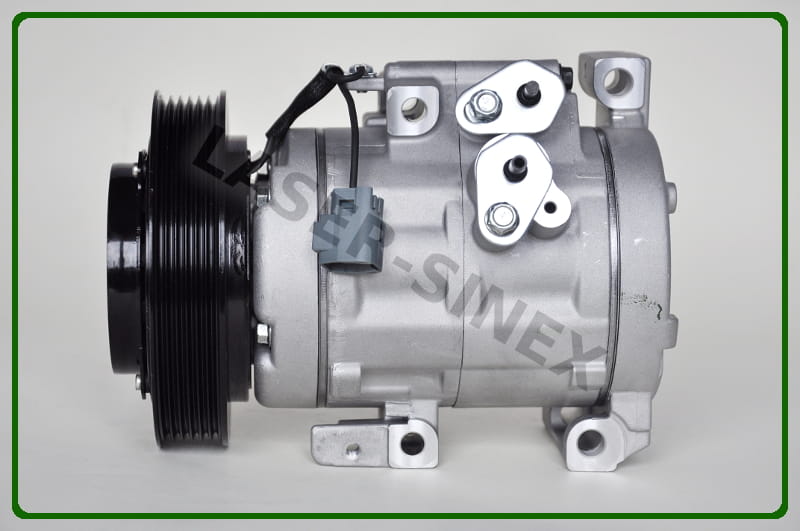 Sprężarka klimatyzacji samochodowej (kompresor) jest jedną z części zamiennych układu chłodzenia w samochodzie. Kompresor układu klimatyzacji napędzany jest za pomocą paska klinowego silnika. Sprężarka odpowiedzialna jest za sprężanie czynnika chłodniczego i przekazywanie go w postaci gazu o wysokiej temperaturze i ciśnieniu do skraplacza - skąd, przez osuszacz trafia do zaworu rozprężnego. Następnie w postaci cieczy o niskim ciśnieniu, transportowany jest do parownika gdzie z pomocą wiatraka dociera do kabiny klimatyzowanego pojazdu. Zadaniem sprężarki układu klimatyzacji jest napędzanie całej klimatyzacji w samochodzie.