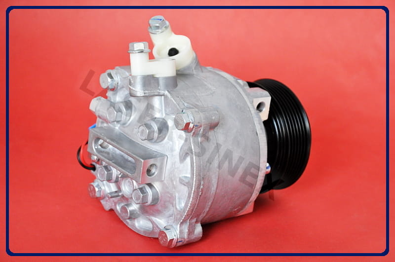 Sprężarka klimatyzacji samochodowej (kompresor) jest jedną z części zamiennych układu chłodzenia w samochodzie. Kompresor układu klimatyzacji napędzany jest za pomocą paska klinowego silnika. Odpowiedzialny jest za sprężanie czynnika chłodniczego i przekazywanie go w postaci gazu o wysokiej temperaturze i ciśnieniu do skraplacza - skąd, przez osuszacz trafia do zaworu rozprężnego. Następnie w postaci cieczy o niskim ciśnieniu, transportowany jest do parownika gdzie z pomocą wiatraka dociera do kabiny klimatyzowanego pojazdu. Zadaniem sprężarki układu klimatyzacji jest napędzanie całej klimatyzacji w samochodzie.