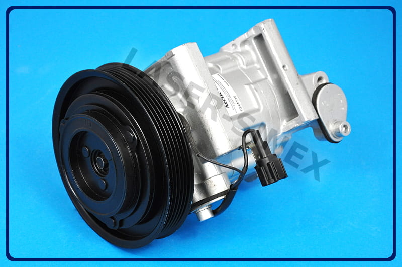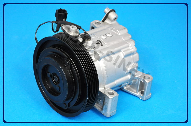 Sprężarka klimatyzacji samochodowej (kompresor) jest jedną z części zamiennych układu chłodzenia w samochodzie. Kompresor układu klimatyzacji napędzana jest za pomocą paska klinowego silnika. Sprężarka odpowiedzialna jest za sprężanie czynnika chłodniczego i przekazywanie go w postaci gazu o wysokiej temperaturze i ciśnieniu do skraplacza - skąd, przez osuszacz trafia do zaworu rozprężnego. Następnie w postaci cieczy o niskim ciśnieniu, transportowany jest do parownika gdzie z pomocą wiatraka dociera do kabiny klimatyzowanego pojazdu. Zadaniem sprężarki układu klimatyzacji jest napędzanie całej klimatyzacji w samochodzie.