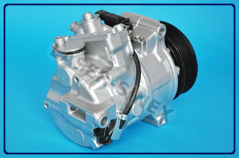 Sprężarka klimatyzacji samochodowej (kompresor) jest jedną z części zamiennych układu chłodzenia w samochodzie. Kompresor układu klimatyzacji napędzany jest za pomocą paska klinowego silnika. Odpowiedzialny jest za sprężanie czynnika chłodniczego i przekazywanie go w postaci gazu o wysokiej temperaturze i ciśnieniu do skraplacza - skąd, przez osuszacz trafia do zaworu rozprężnego. Następnie w postaci cieczy o niskim ciśnieniu, transportowany jest do parownika gdzie z pomocą wiatraka dociera do kabiny klimatyzowanego pojazdu. Zadaniem sprężarki układu klimatyzacji jest napędzanie całej klimatyzacji w samochodzie.