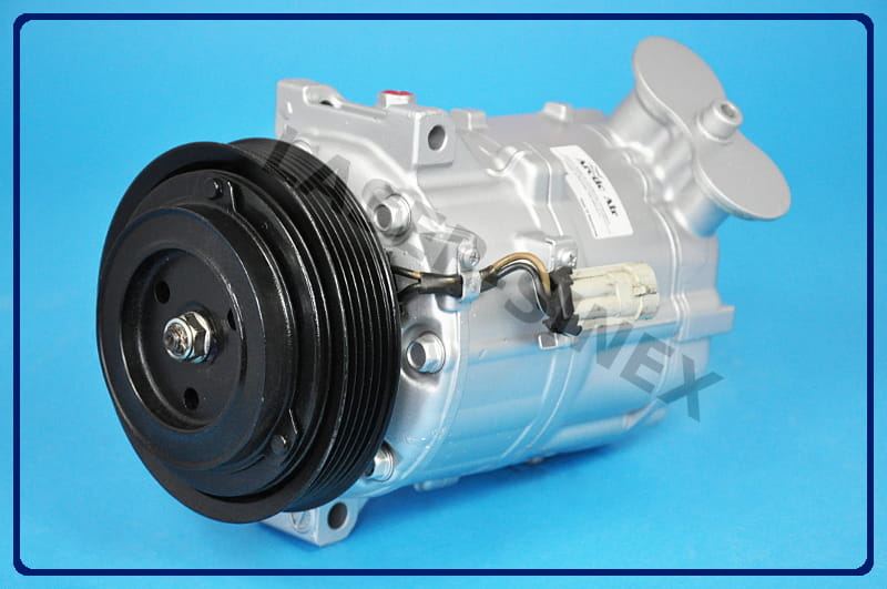 Sprężarka klimatyzacji samochodowej (kompresor) jest jedną z części zamiennych układu chłodzenia w samochodzie. Kompresor układu klimatyzacji napędzana jest za pomocą paska klinowego silnika. Sprężarka odpowiedzialna jest za sprężanie czynnika chłodniczego i przekazywanie go w postaci gazu o wysokiej temperaturze i ciśnieniu do skraplacza - skąd, przez osuszacz trafia do zaworu rozprężnego. Następnie w postaci cieczy o niskim ciśnieniu, transportowany jest do parownika gdzie z pomocą wiatraka dociera do kabiny klimatyzowanego pojazdu. Zadaniem sprężarki układu klimatyzacji jest napędzanie całej klimatyzacji w samochodzie.