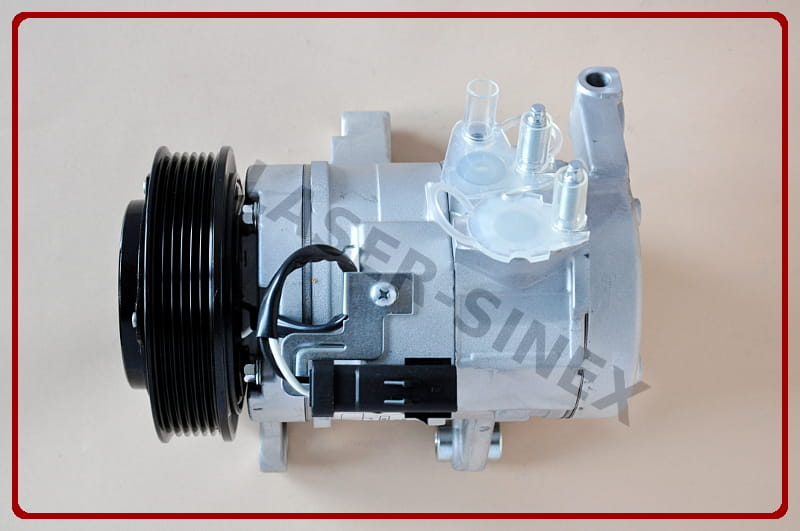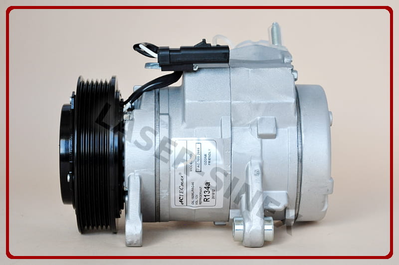 Sprężarka klimatyzacji samochodowej (kompresor) jest jedną z części zamiennych układu chłodzenia w samochodzie. Kompresor układu klimatyzacji napędzany jest za pomocą paska klinowego silnika. Sprężarka odpowiedzialna jest za sprężanie czynnika chłodniczego i przekazywanie go w postaci gazu o wysokiej temperaturze i ciśnieniu do skraplacza - skąd, przez osuszacz trafia do zaworu rozprężnego. Następnie w postaci cieczy o niskim ciśnieniu, transportowany jest do parownika gdzie z pomocą wiatraka dociera do kabiny klimatyzowanego pojazdu. Zadaniem sprężarki układu klimatyzacji jest napędzanie całej klimatyzacji w samochodzie.