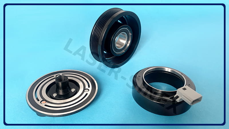 Sprzęgło elektromagnetyczne jest elementem składowym sprężarki klimatyzacji. Kompletny napęd kompresora składa się z koła pasowego z łącznikiem sprzęgła, zabierak (tarcza sprzęgła) oraz elektromagnes (cewka sprzęgła). Koło sprzęgła napędzane jest paskiem napędowym odchodzącym od silnika samochodu. Sprzęgło sprężarki za pomocą cewki elektromagnetycznej, umieszczonej w kole pasowym sprzęgła, powoduje włączenie i rozłączenie kompresora, we właściwych momentach pracy układu chłodzącego.