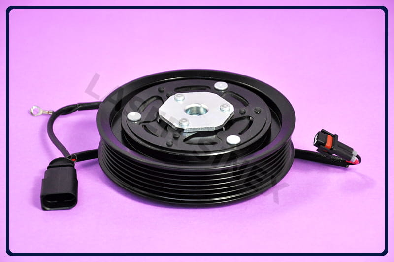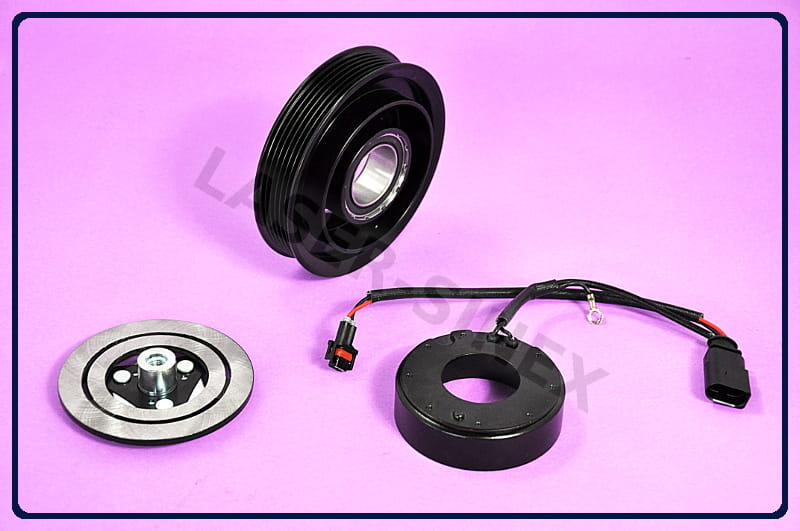 Sprzęgło elektromagnetyczne jest elementem składowym sprężarki klimatyzacji. Kompletny napęd kompresora składa się z koła pasowego z łącznikiem sprzęgła, zabierak (tarcza sprzęgła) oraz elektromagnes (cewka sprzęgła). Koło sprzęgła napędzane jest paskiem napędowym odchodzącym od silnika samochodu. Sprzęgło sprężarki za pomocą cewki elektromagnetycznej, umieszczonej w kole pasowym sprzęgła, powoduje włączenie i rozłączenie kompresora, we właściwych momentach pracy układu chłodzącego.