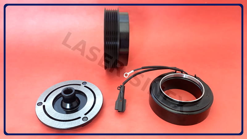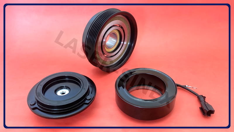 Sprzęgło jest elementem składowym kompresora klimatyzacji. Kompletny napęd sprężarki składa się z kola pasowego z łącznikiem sprzęgła, zabierak (tarcza sprzęgła) oraz elektromagnes (cewka sprzęgła). Koło sprzęgła napędzane jest paskiem napędowym odchodzącym od silnika samochodu. Sprzęgło sprężarki za pomocą cewki elektromagnetycznej, umieszczonej w kole pasowym sprzęgła, powoduje włączenie i rozłączenie kompresora, we właściwych momentach pracy układu chłodzącego.