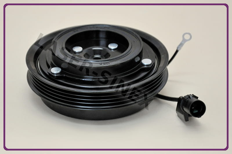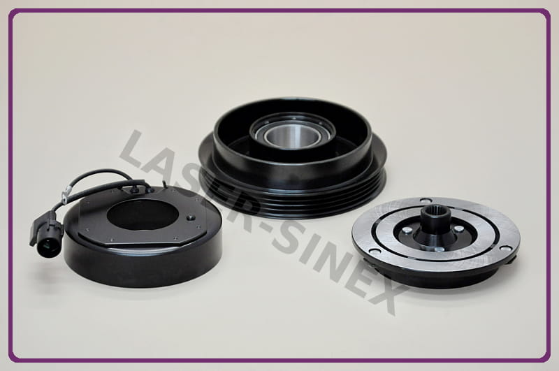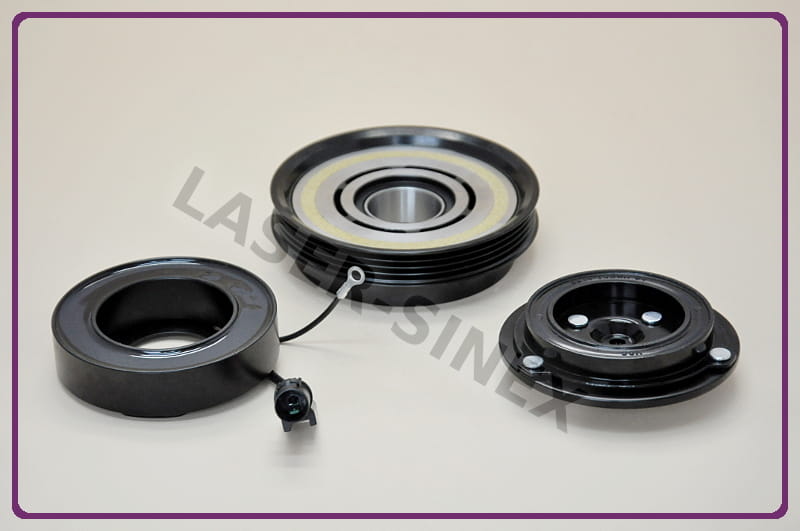 Sprzęgło elektromagnetyczne jest elementem składowym sprężarki klimatyzacji. Kompletny napęd kompresora składa się z koła pasowego z łącznikiem sprzęgła, zabierak (tarcza sprzęgła) oraz elektromagnes (cewka sprzęgła). Koło sprzęgła napędzane jest paskiem napędowym odchodzącym od silnika samochodu. Sprzęgło sprężarki za pomocą cewki elektromagnetycznej, umieszczonej w kole pasowym sprzęgła, powoduje włączenie i rozłączenie kompresora, we właściwych momentach pracy układu chłodzącego.