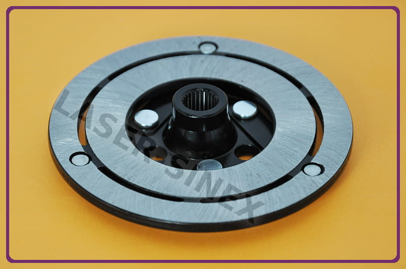 Tarcza sprzęgła do kompresora klimatyzacji jest jednym z elementów wykonawczych sprzęgła elektromagnetycznego. Sercem klimatyzacji samochodowej jest sprężarka, której zadaniem jest przemieszczanie czynnika z części niskiego ciśnienia do części wysokiego ciśnienia. Kompletne sprzęgło składa się z trzech elementów: koła pasowego z łożyskiem, cewki elektromagnetycznej oraz tarczy sprzęgła, zwanej potocznie sprzęgłem lub zabierakiem. Zabierak reaguje na impuls cewki elektromagnetycznej sprężarki klimatyzacji - odpowiedzialny jest za łagodne załączenie napędu sprężarki klimy.