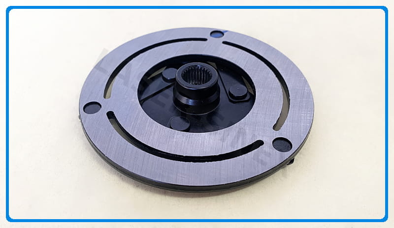 Tarcza sprzęgła do kompresora klimatyzacji jest jednym z elementów wykonawczych sprzęgła elektromagnetycznego. Sercem klimatyzacji samochodowej jest sprężarka, której zadaniem jest przemieszczanie czynnika z części niskiego ciśnienia do części wysokiego ciśnienia. Kompletne sprzęgło składa się z trzech elementów: koła pasowego z łożyskiem, cewki elektromagnetycznej oraz tarczy sprzęgła, zwanej potocznie sprzęgłem lub zabierakiem. Zabierak reaguje na impuls elektromagnesu sprężarki - odpowiedzialny jest za łagodne załączenie napędu sprężarki klimy.
