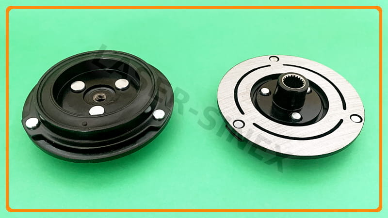 Tarcza sprzęgła do kompresora klimatyzacji jest jednym z elementów wykonawczych sprzęgła elektromagnetycznego. Sercem klimatyzacji samochodowej jest sprężarka, której zadaniem jest przemieszczanie czynnika z części niskiego ciśnienia do części wysokiego ciśnienia. Kompletne sprzęgło składa się z trzech elementów: koła pasowego z łożyskiem, cewki elektromagnetycznej oraz tarczy sprzęgła, zwanej potocznie sprzęgłem lub zabierakiem. Zabierak reaguje na impuls elektromagnesu sprężarki - odpowiedzialny jest za łagodne załączenie napędu sprężarki klimy.