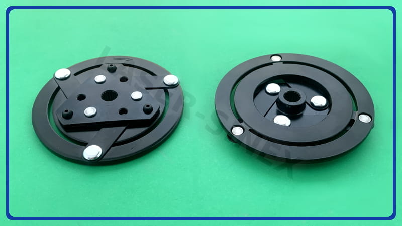 Tarcza sprzęgła do kompresora klimatyzacji jest jednym z elementów wykonawczych sprzęgła elektromagnetycznego. Sercem klimatyzacji samochodowej jest sprężarka, której zadaniem jest przemieszczanie czynnika z części niskiego ciśnienia do części wysokiego ciśnienia. Kompletne sprzęgło składa się z trzech elementów: koła pasowego z łożyskiem, cewki elektromagnetycznej oraz tarczy sprzęgła, zwanej potocznie sprzęgłem lub zabierakiem. Zabierak reaguje na impuls elektromagnesu sprężarki - odpowiedzialny jest za łagodne załączenie napędu sprężarki klimy.