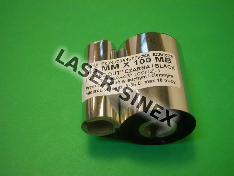 Taśma, folia termotransferowa TTR 45 mm x 100 m woskowa, kalka termotransferowa; kalka do drukarek etykiet, drukarki etykiet samoprzylapnych, folia do drukarek, drukarki etykiet paxar