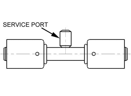 Złącze aluminiowe proste z dwoma skuwkami i portem serwisowym, rurka 8-8, złącza zaciskowe z portem wysokiego ciśnienia, auto-klima sklep (ZS-131)