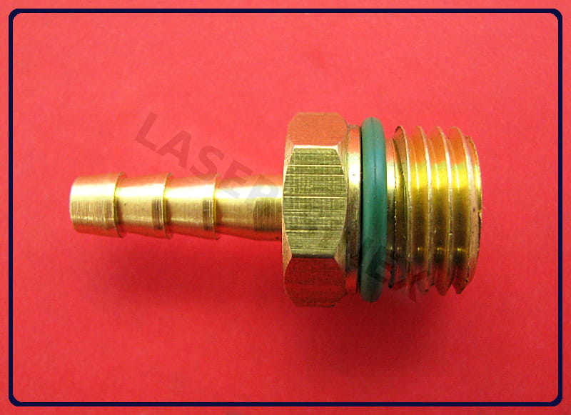 Adapter serwisowy do maszyny do napełniania klimatyzacji. Wystarczy z jednej strony wkręcić złącze do maszyny do napełniania klimatyzacji, z drugiej podłączyć wąż i zapiąć metalową opaską.