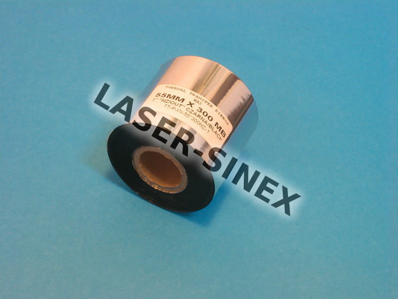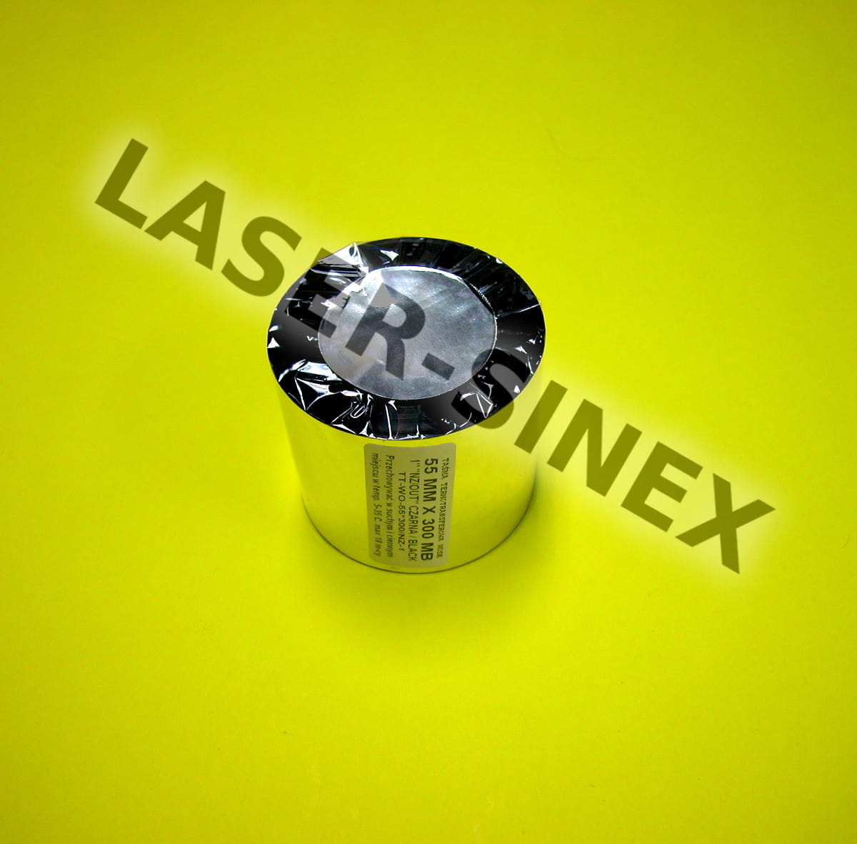 Taśma, folia termotransferowa TTR 55mm x 300m woskowa, na zewnątrz (OUT) - 1", CZARNA, taśma do drukarki casio, drukowanie etykiet, druk etykiet samoprzylepnych